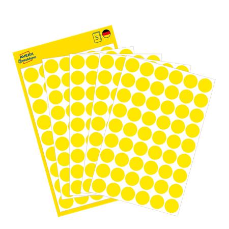 Etikett, 12 mm, kör, AVERY ZWECKFORM, sárga, 270 etikett/csomag